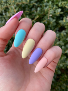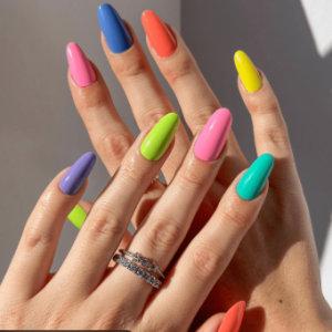Perpaduan warna yang cocok untuk kuku dengan penampilan warna-warni yang sesuai membuat kuku menjadi manis dan cantik.