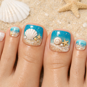 Nah, ini dia desain nail art kaki elegant bertema pantai yang cocok baget kamu jadiin inspirasi :